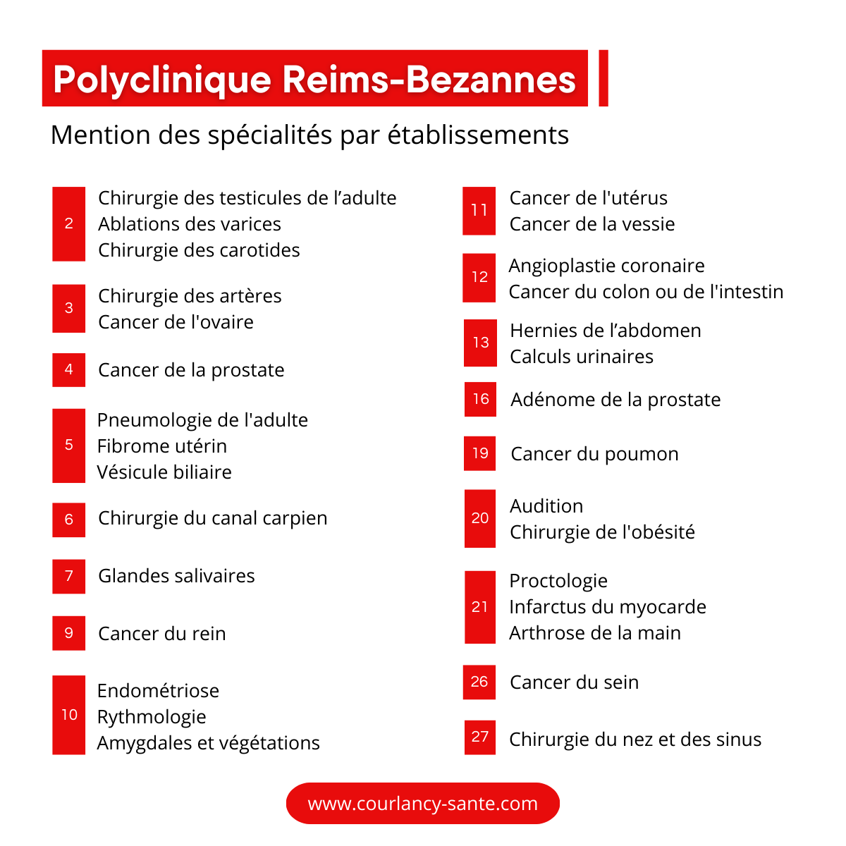 La Polyclinique de Courlancy se distingue également par d’excellents résultats dans de nombreuses spécialités.